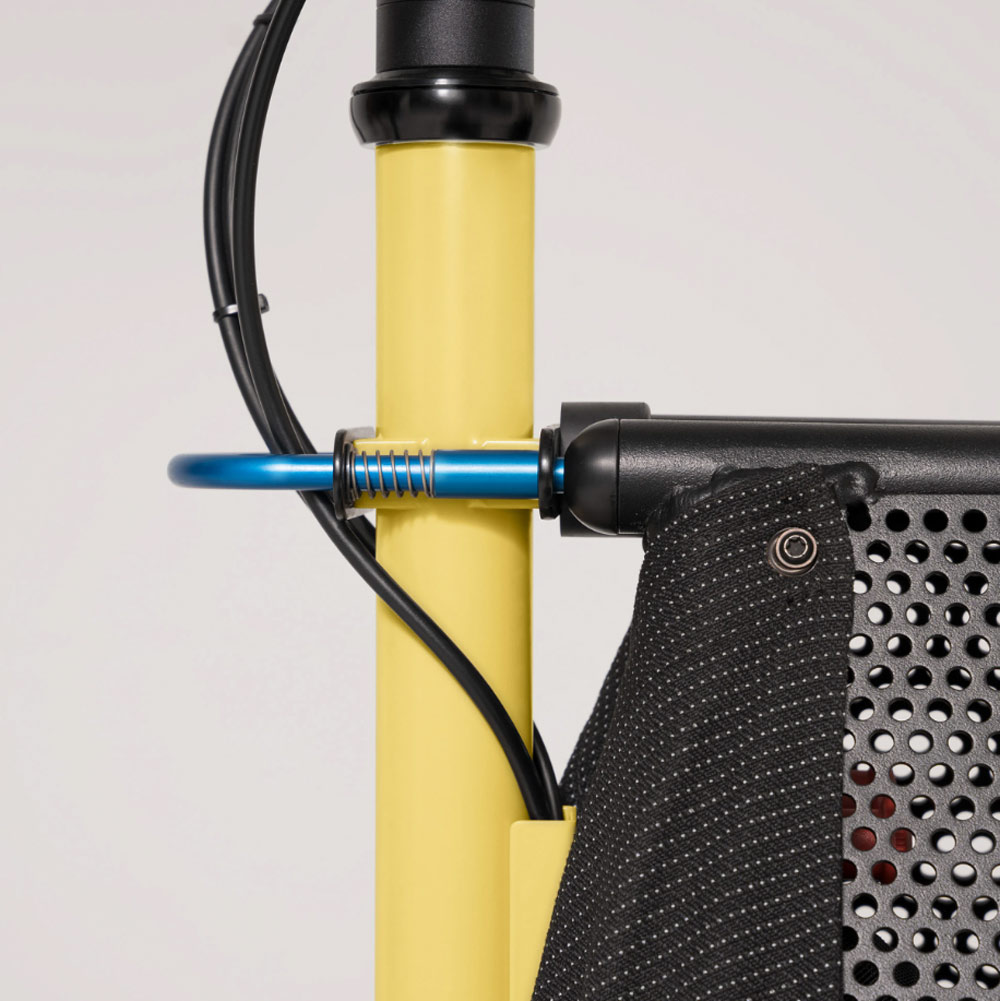 Ein Zug am blauen Bügel und schon entfaltet das muli Muskel sein ganzes Potenzial. Genauso leicht kann der Korb wieder zusammengepackt werden. Das muli Muskel verbindet die Vorteile eine Lastenrades mit denen eines Kompaktrades.